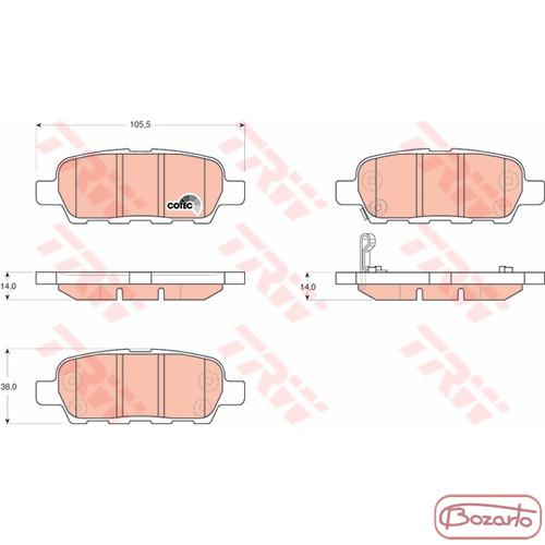 Klocki hamulcowe TRW Cotec Infiniti EX FX G37 M35 M37 M30d Q50 Q60 Q70 Nissan Cube Juke X-Trail Qashkai Murano Renault Koleos komplet TYŁ |