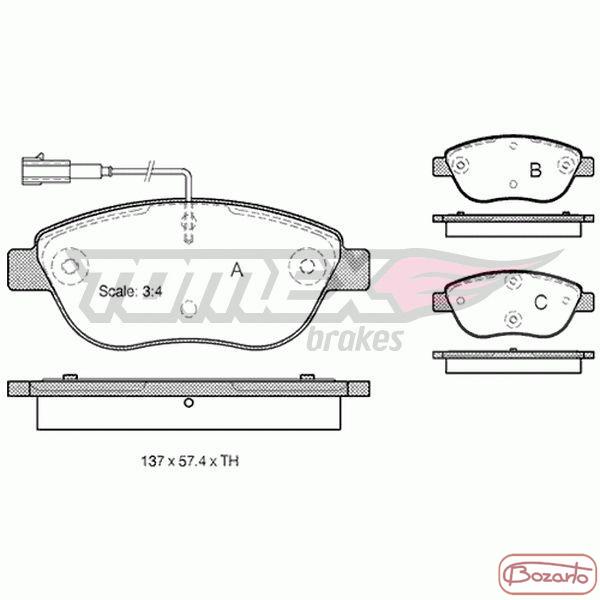 Klocki hamulcowe Tomex Abarth 500 Fiat Bravo II Stilo Doblo Grande Punto Linea Multipla Lancia Delta III Musa komplet PRZÓD czujnik do tarcz 284mm |