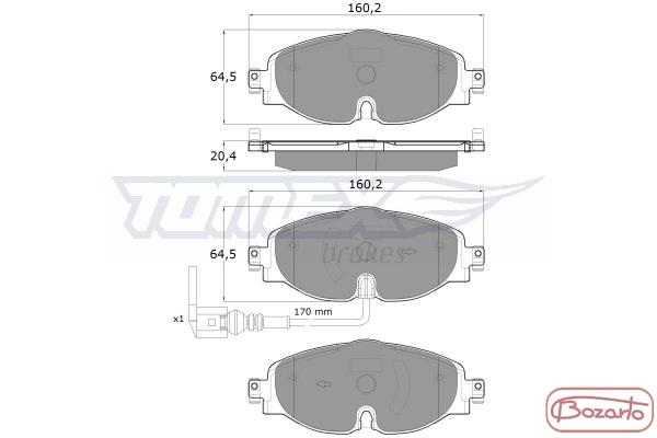 Klocki hamulcowe Tomex Audi A3 III 8V Q2 TT III Seat Leon III Ateca Skoda Octavia III Superb III VW Golf VII Passat 2014- Tiguan II Touran III komplet PRZÓD do tarcz 288/ 312mm |