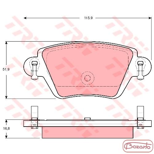 Klocki hamulcowe firmy TRW (dawniej Lucas) jako jedne z niewielu są w stanie sprostać wymaganiom jakie są stawiane klockom współpracującym z perforowanymi tarczami hamulcowymi Bozarto serii GTR.