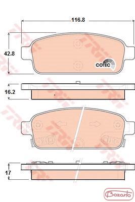 Klocki hamulcowe TRW Cotec OPEL Astra J Cascada Mokka Zafira C Chevrolet Cruze Orlando Trax komplet TYŁ |